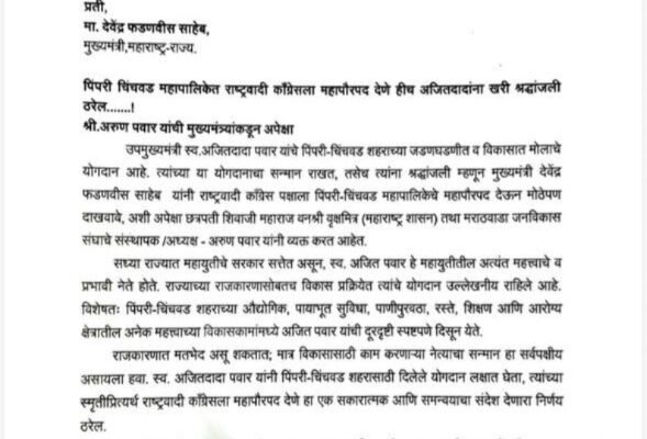 अरुण पवार यांची मुख्यमंत्र्यांकडून अपेक्षा पिंपरी : उपमुख्यमंत्री स्व. अजितदादा पवार यांचे पिंपरी-चिंचवड शहराच्या जडणघडणीत व विकासात मोलाचे योगदान आहे….