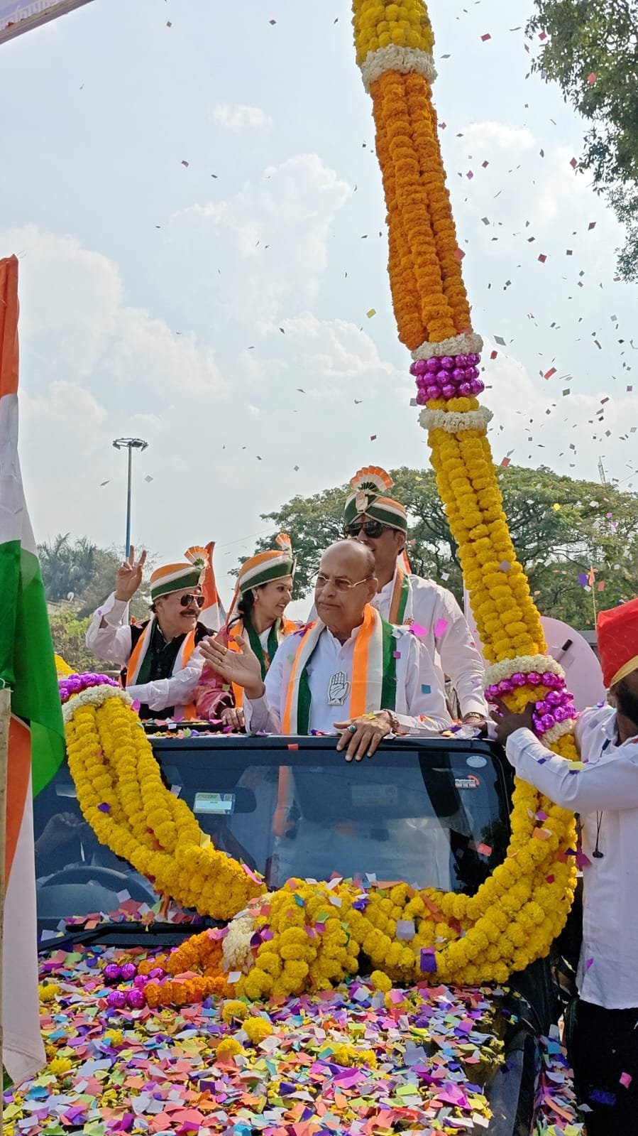 याप्रसंगी काँग्रेस आणि शिवसेना उद्धव बाळासाहेब ठाकरे पक्षाच्या पक्षाचे झेंडे, पंजा आणि मशाल यांच्या प्रतिकृती, फटाक्यांची आतिषबाजी, घोषणांचा गगनभेदी आवाज यामुळे सारे वातावरण भारून गेले होते. यावेळी काँग्रेसचे असंख्य पदाधिकारी व कार्यकर्ते उपस्थित होते.