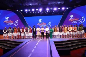पुणे, दि. १७ जानेवारी (जिमाका वृत्तसेवा): बजाज पुणे ग्रँड टूर २०२६ ही केवळ आंतरराष्ट्रीय सायकल स्पर्धा म्हणून मर्यादित न राहता पुढील अनेक पिढ्यांसाठी टिकून राहणारा पायाभूत आणि क्रीडा वारसा ठरणार आहे, असे प्रतिपादन मुख्यमंत्री देवेंद्र फडणवीस यांनी केले.पुणे येथील जेडब्लू मेरियट हॉटेल मध्ये आयोजित या प्रतिष्ठित आंतरराष्ट्रीय बजाज पुणे ग्रँड टूरच्या शुभारंभ आणि आंतरराष्ट्रीय सायकलपटूंच्या स्वागतप्रसंगी ते बोलत होते.यावेळी केंद्रीय सहकार राज्यमंत्री मुरलीधर मोहोळ, राज्याचे उच्च व तंत्र शिक्षण मंत्री चंद्रकांतदादा पाटील, सामजिक न्याय राज्य मंत्री माधुरी मिसाळ, सायकलिंग फेडरेशन ऑफ इंडियाचे महासचिव दातो मनिंदर पाल सिंग मंचावर उपस्थित होते.