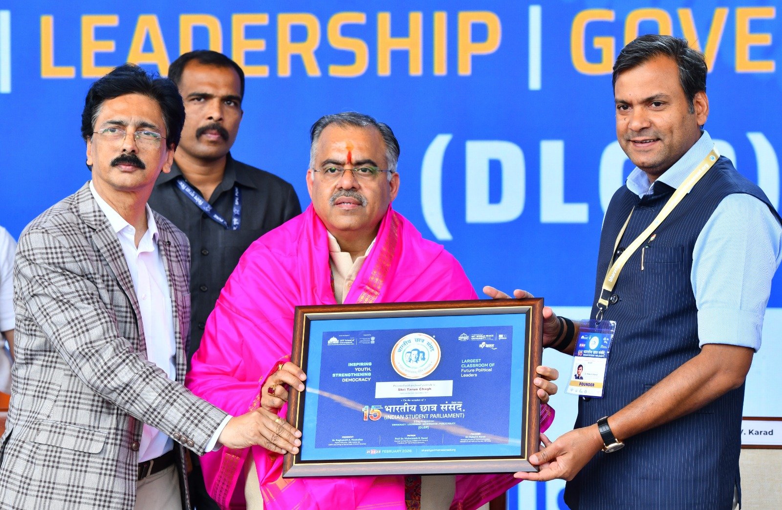 पुणे, दि.२२ फेब्रुवारी: ” देश की चुनौतियों को सामने रख १लाख नौजवानों को राजनीति में कदम रखते हुए देश की बागडोर संभालने की बात प्रधानमंत्री नरेंद्र मोदी ने कही है. नेशन फर्स्ट की भावना को ध्यान में रखते हुए हमें हर क्षेत्र में बेहरतीन काम करना चाहिए. हमारा लक्ष्य २०४७ तक एक विकसित भारत बनाना है. यह हमारी मातृभूमि और कर्मभूमि है. युवाओं को पूरी दुनिया में भारत का नाम रोशन करने के लिए मजबूती से आगे आने की भाजपा के राष्ट्रीय जनरल सेक्रेटरी तरूण चूग ने की. एमआईटी वर्ल्ड पीस यूनिवर्सिटी और एमआईटी स्कूल ऑफ गवर्नमेंट के संयुक्त तत्वावधान में आयोजित १५वी भारतीय छात्र संसद के दूसरे दिन आयोजित कार्यक्रम में वे बतौर मुख्य अतिथि के रुप में बोल रहे थे. कार्यक्रम की अध्यक्षता एमआईटी वर्ल्ड पीस यूनिवर्सिटी के कार्याध्यक्ष डॉ. राहुल विश्वनाथ कराड ने निभाई. इस मौके पर यूनिवर्सिटी के कुलपति डॉ. आर.एम.चिटणीस उपस्थित थे.