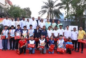 रोलबॉल स्टेडियम आच्छादित करण्याच्या कामाचे भूमिपूजन व खेळाडूंचा सत्कार संपन्न