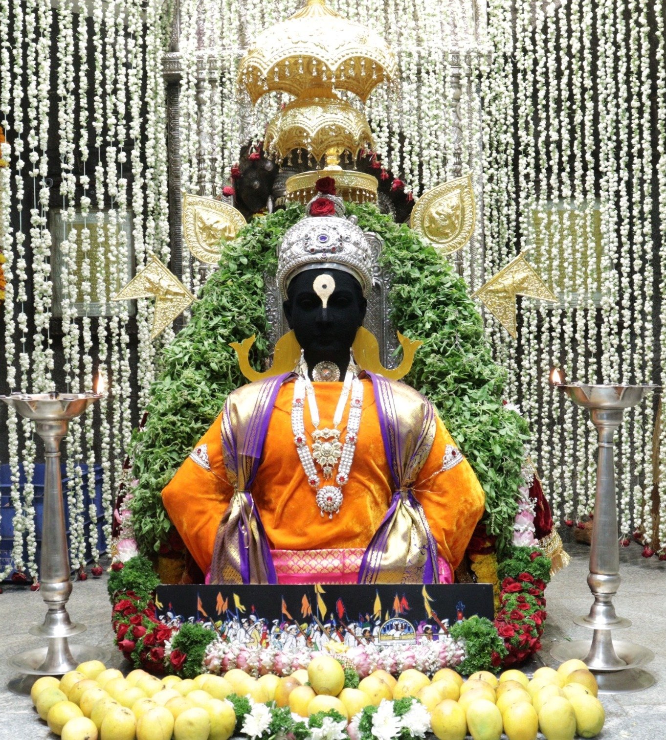 आळंदी ( अर्जुन मेदनकर ) : श्री संत ज्ञानेश्वर महाराज संजीवन समाधी मंदिरात अक्षय तृतीया निमित्त श्रींचे संजीवन समाधीवर श्री भगवान पांडुरंगरायांचा अवतार साकारण्यात आले. लक्षवेधी चंदन उटी पुण्यातील मूर्तिकार अभिजित धोंडफळे आणि सहकारी यांनी परिश्रम पूर्वक साकारली. श्री ज्ञानेश्वर महाराज संस्थान कमिटी, स्वकाम सेवा मंडळ आळंदी यांच्या वतीने ही चंदन उटी सेवा उत्साहात रुजू झाली. अशी माहिती व्यवस्थापक माऊली वीर यांनी दिली. भाविकांनी आळंदी पंचक्रोशी तील मंदिरांत चंदनउटी पाहण्यासह श्रींचे दर्शनास गर्दी केली होती.