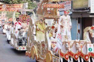 पुणे: पुणे में ‘वर्षीतप शाही पारणा महोत्सव’ के अवसर पर गुरुवार पेठ स्थित श्री आदिश्वर महाराज मंदिर से गंगाधाम चौक तक 251 वर्षीतप तपस्वियों की भव्य शोभायात्रा निकाली गई। यह शोभायात्रा रामोशी गेट, टिम्बर मार्केट और सेव्हन लव्हज चौक मार्ग से होकर निकली गई, जिसे देखने के पुणे के सड़कों पर श्रद्धा का सैलाब उमड़ पड़ा। इस भव्य आयोजन का आयोजन श्री गोटीवाला ओसवाल जैन संघ और श्री आदिश्वर महाराज मंदिर ट्रस्ट द्वारा किया गया.