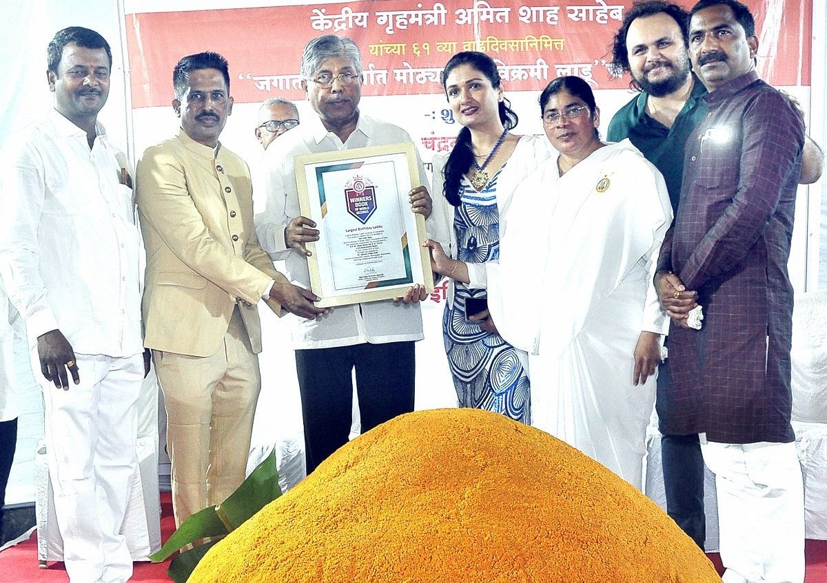 पुणे: दीवाली पाडवा और केंद्रीय गृह मंत्री अमित शाह के 61वें जन्मदिन के अवसर पर पुणे स्थित प्रजापिता ब्रह्माकुमारी ईश्वरीय विश्वविद्यालय, रायकर फार्म, बाणेर में 610 किलो वजन का विशाल मोतीचूर लड्डू तैयार किया गया, जिसने एक अनूठा विश्व रिकॉर्ड बनाया।