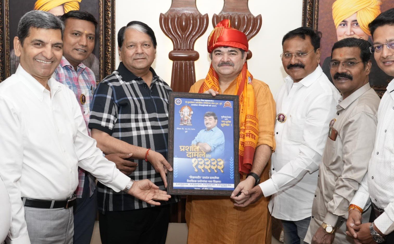 पुणे. श्री तुळशीबाग गणेशोत्सव मंडल की ओर से सुप्रसिद्ध अभिनेता प्रशांत दामले का भव्य सत्कार किया गया। अभिनेता दामले 40 वर्षों से मराठी चित्रपट और नाट्यसृष्टी में उल्लेखनीय योगदान देते हुए अपने वैयक्तिक 13,333वें नाट्यप्रयोगाचा ऐतिहासिक विश्वविक्रम रचला है। इसी उपलब्धि के उपलक्ष्य में मंडल की ओर से उनका विशेष रूप से सम्मान किया गया।